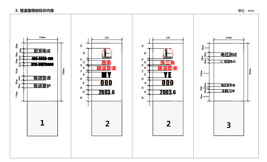 3. 管道里程樁標(biāo)識(shí)內(nèi)容