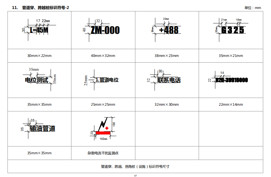 6. 管道穿、跨越樁標(biāo)識(shí)內(nèi)容
