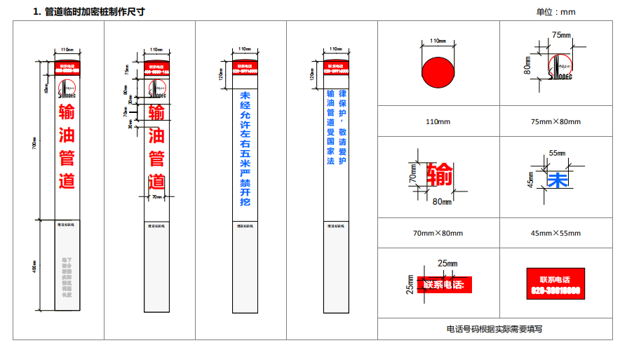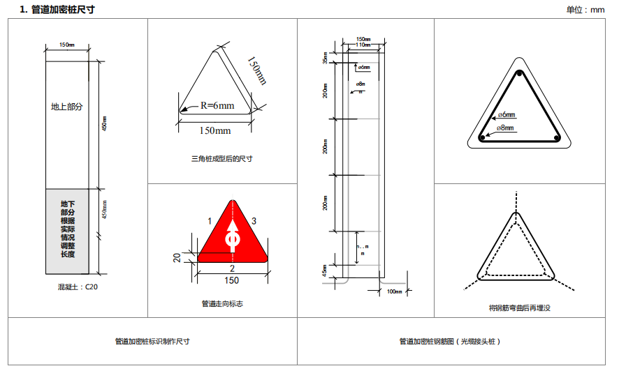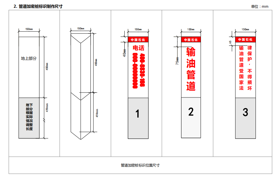 2. 管道加密樁標(biāo)識(shí)制作尺寸